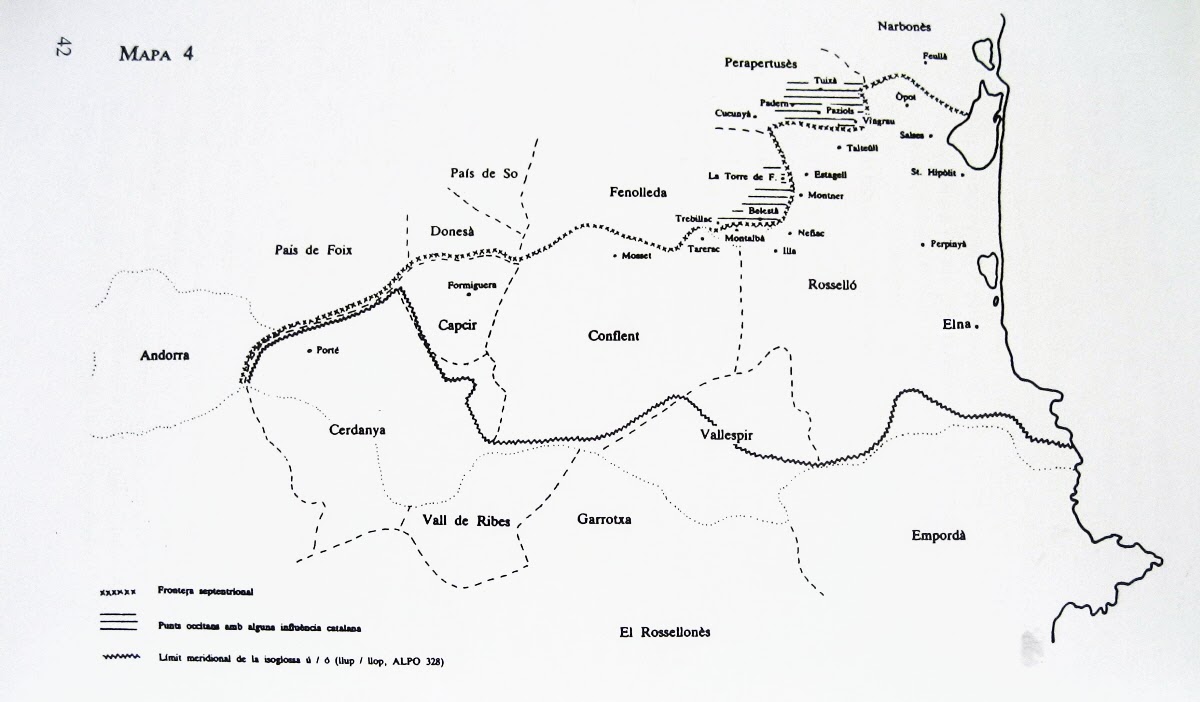 El català septentrional segons Joan Veny, Els parlars catalans (Síntesi de dialectologia) (Palma: Moll, 2002, 13a edició), pàg. 42.