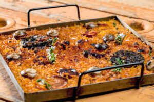 Bacallà a la llauna. Un plat de caragols a la llauna.